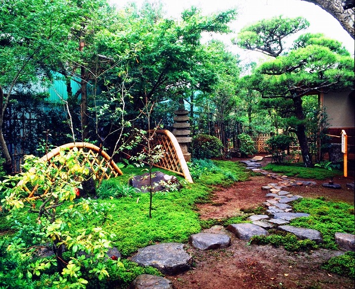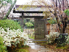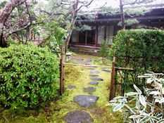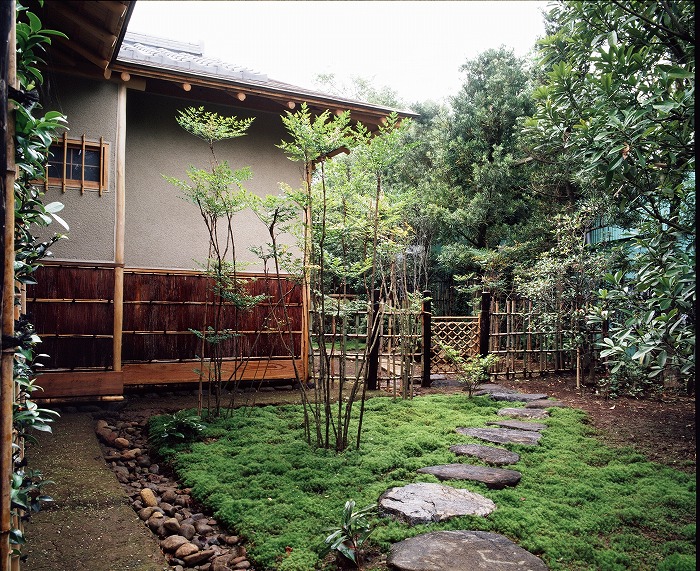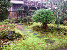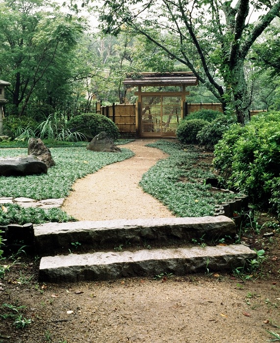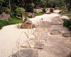 | 茶庭・日本庭園の入口と成る。園路は、石張りで作られる。 | |