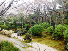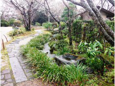 | 二石から四畳半の茶室の園路状態です。写真、後方に桜が咲いていますが年数が増す 事により、より素晴らしい背景が出来ると思います。 | |