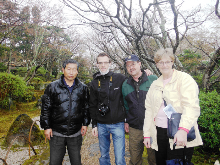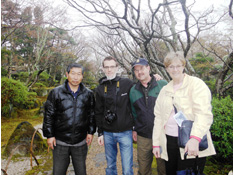 | アメリカからの観光客と作庭者を囲こみよろこんで記念写真を撮る。 | |