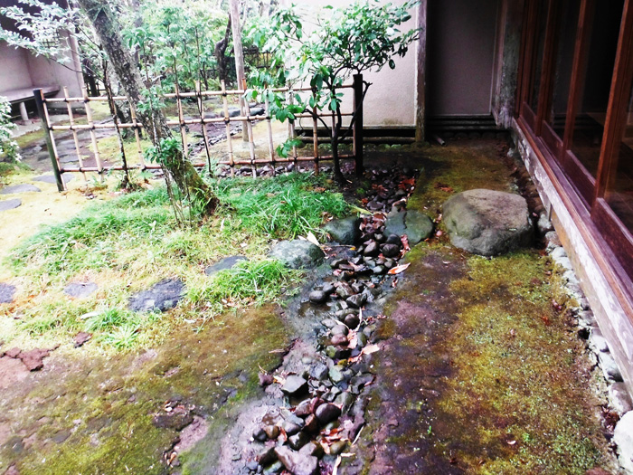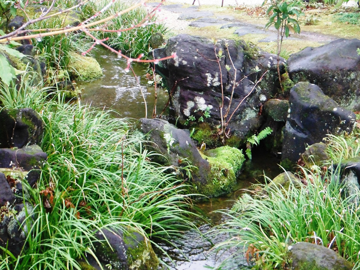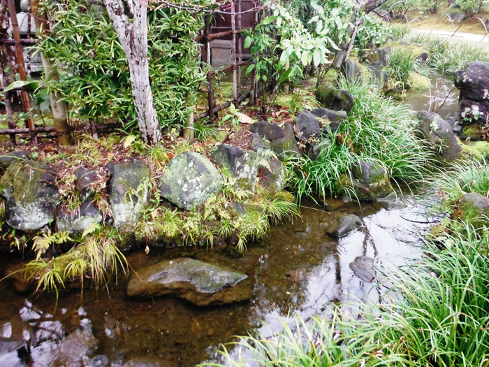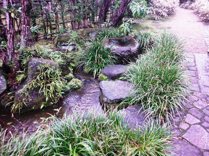 | 井筒と小流、石組によって庭園に対しての動きを演出している。 |