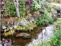 ![]() | 石組みの正面は、枯山水の滝口となります。 |