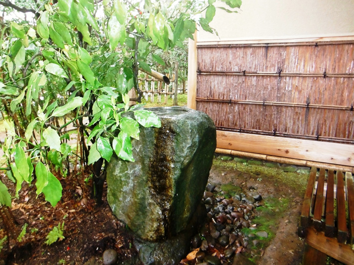 | 左側より | 茶室・広間前に置かれた自然石の手水鉢。 |