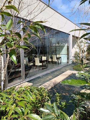 主庭の一部分を表裏一体に庭園空間をデザイン。