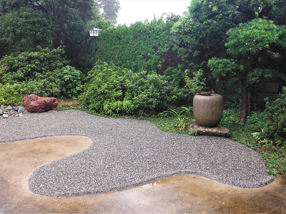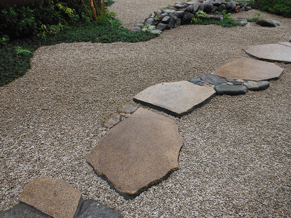 床に対しては、色違いの小砂利を弾き、変化を与えている。