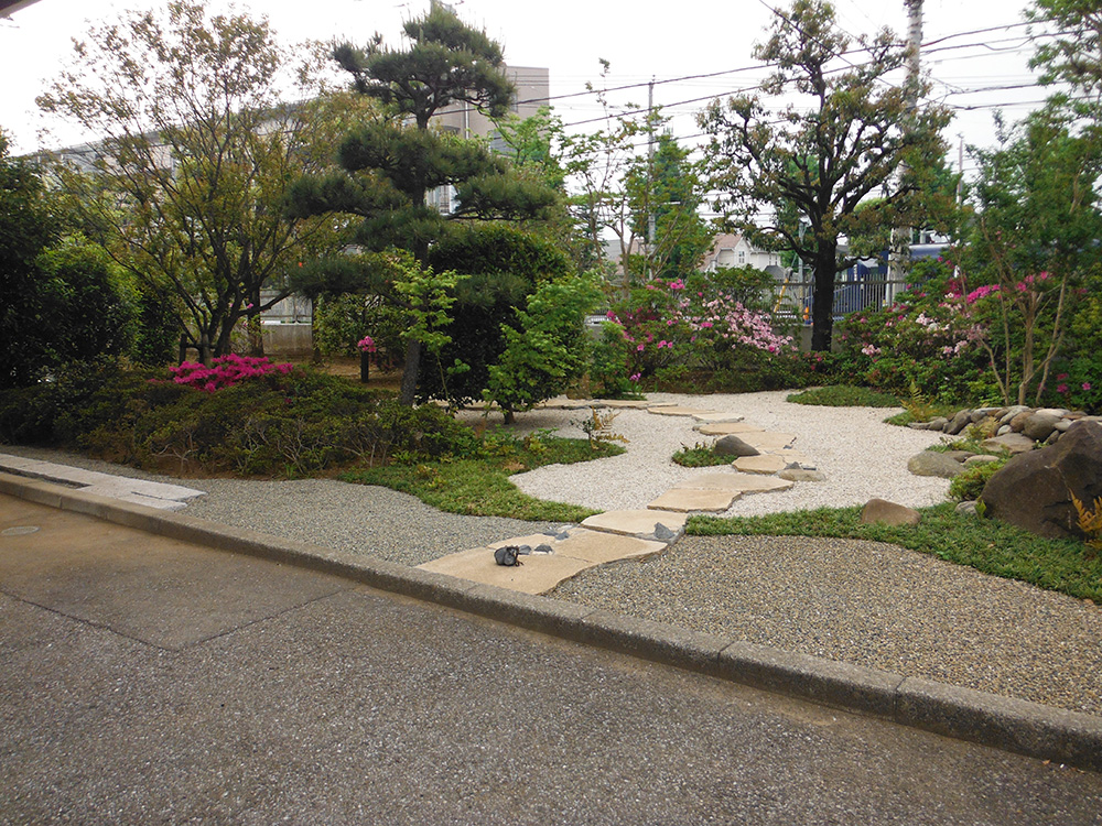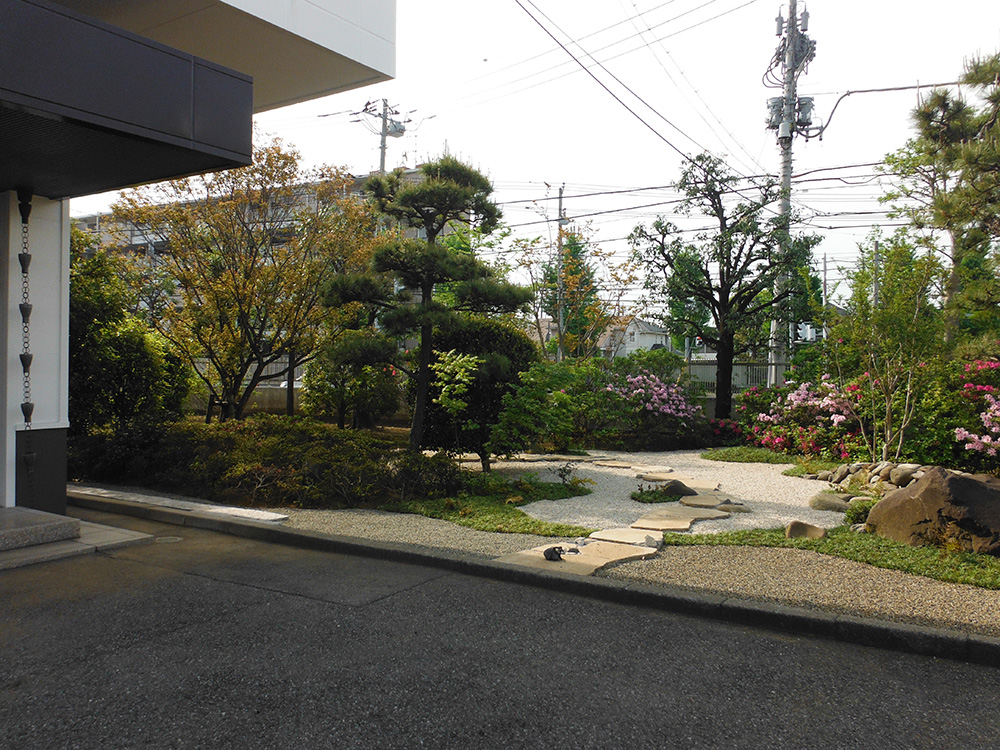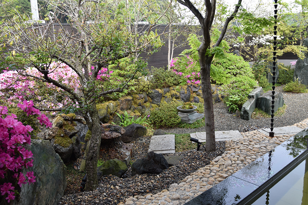 小庭園にあっても花木類を植栽することにより庭に対し四季の明るさを取り入れています。