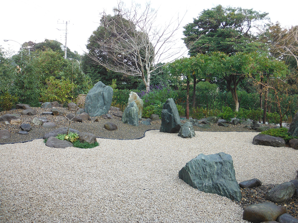 この石庭は、庭の管理を簡素に出来るように作庭いたしました。