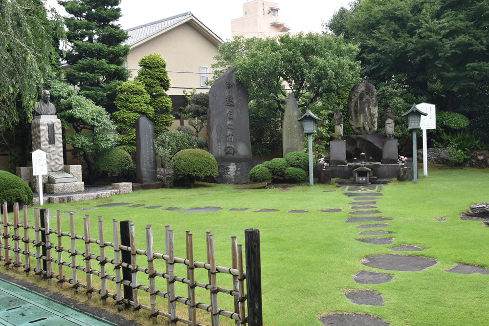これにより、石の組み合わせ四方仏を取り入れ、下界より仏の世界を現す。玉石を組み、橋とし、園路平石張りの中に凹凸のある部分は、人生を歩む姿を取り入れた庭園。