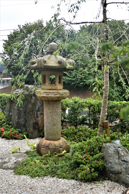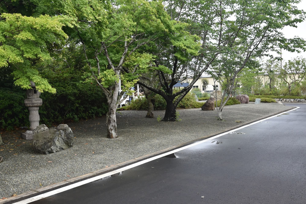 ③ 駐車場は、約3~4坪でですが、後方の景観を利用し琴柱灯篭を置く事より美観を取り込みました。