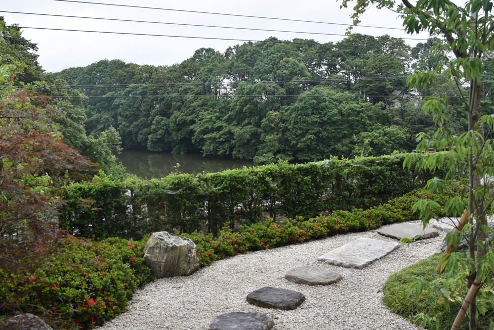 庭の中に対しては、枝垂れ梅を等して池、枝垂れ桜・龍直方と見いられる庭口です。