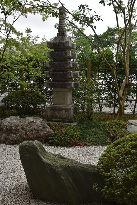 門より庭を見た時、手前に立石を置いているが、この石により各配置物の遠近を配るためである。