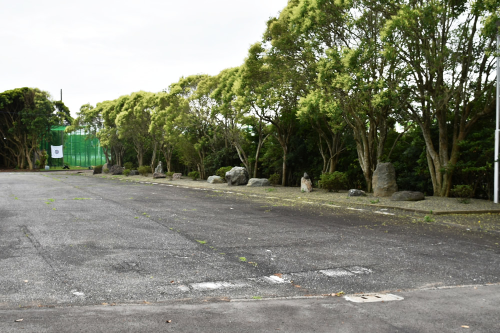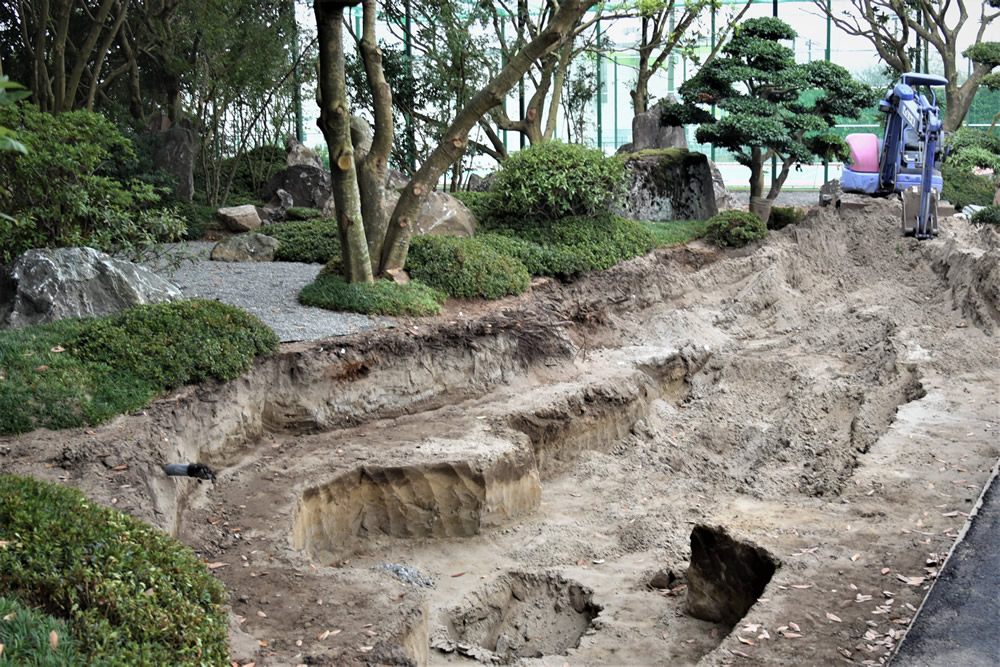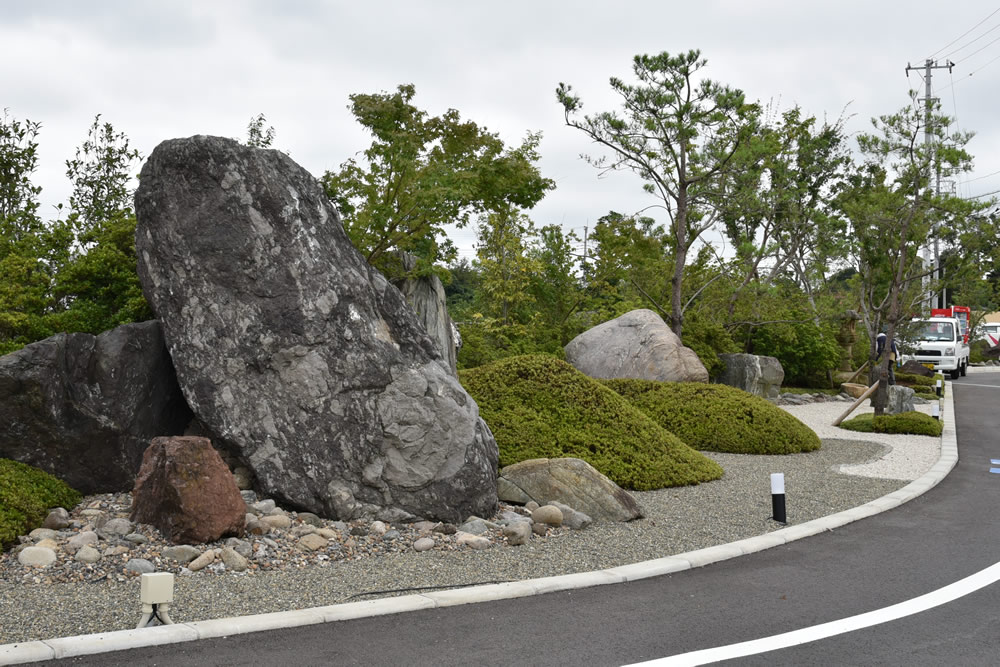 ② 入口の道路左側は、大石を入れて文字に成る用仕込ました。