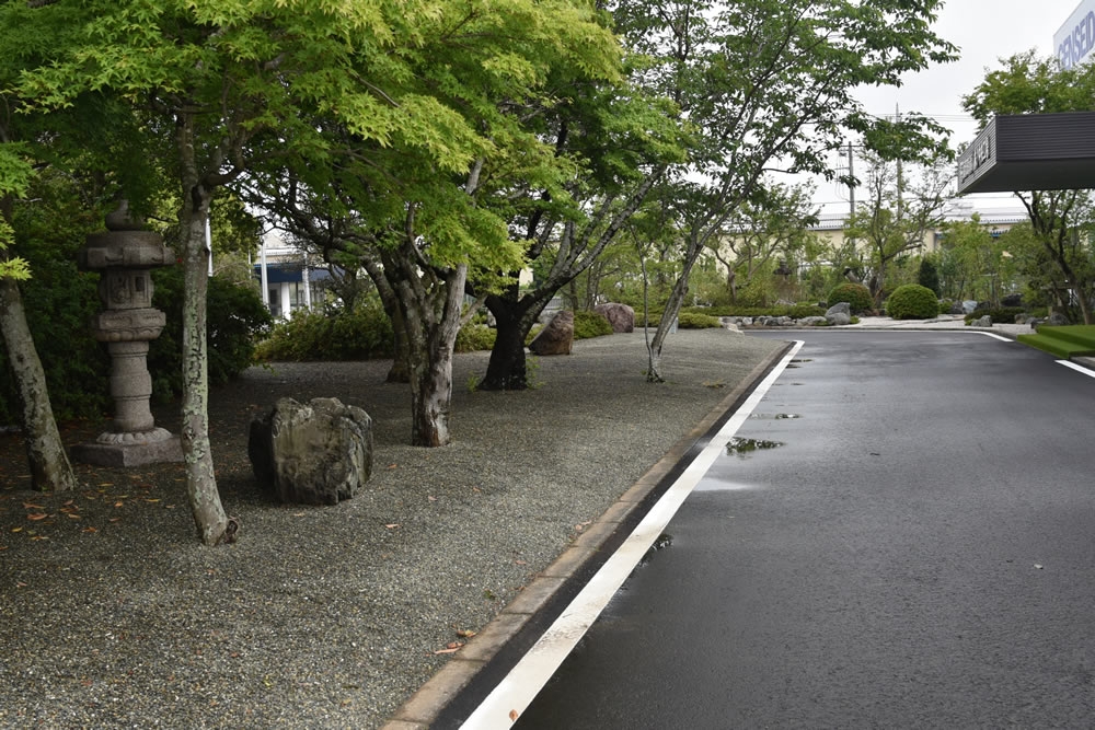 円美の名前に対しては、車庫部の角度(かど)部分を柔らかく見え変化をあたえる為の小砂利による円美の姿。